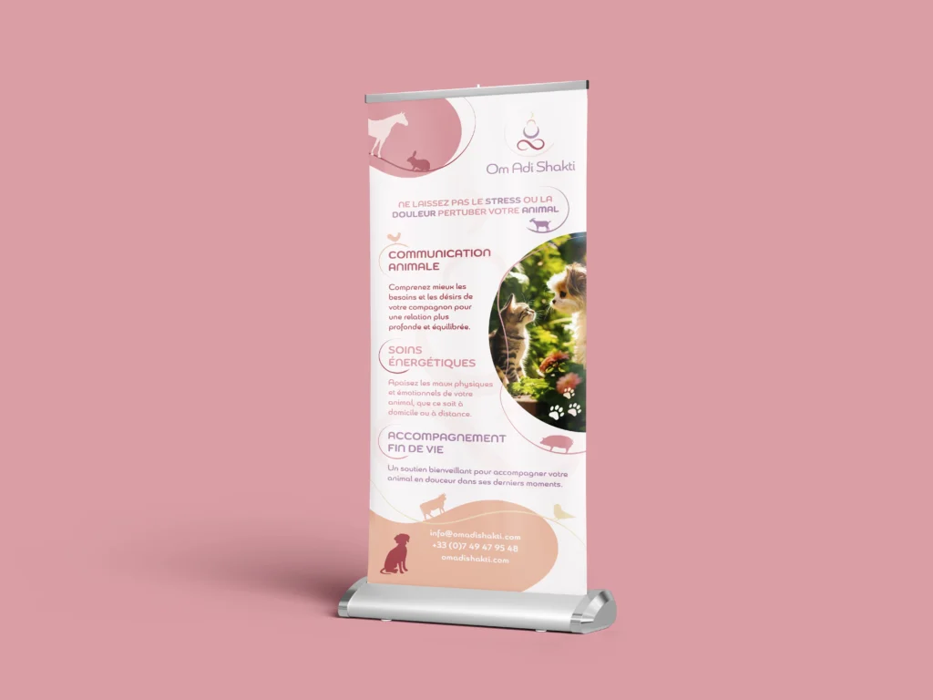 Dès le début, j’ai compris l’univers, les valeurs et la clientèle d’Omadishakti. Ainsi, j’ai créé des supports print clairs, esthétiques et efficaces. D’abord, j’ai conçu un flyer professionnel à Annecy, axé sur les bénéfices clients. Ensuite, j’ai réalisé une carte cadeau élégante, simple à offrir et cohérente. Enfin, j’ai conçu un roll-up lisible et impactant pour les événements. Au final, chaque support sert la conversion, la visibilité et les prises de contact.